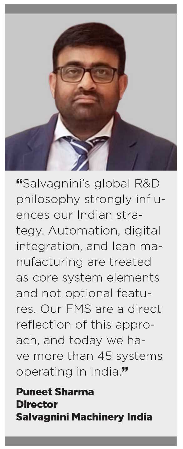 “Salvagnini’s global R&D philosophy strongly influences our Indian strategy,” he remarks. Automation, digital integration, and lean manufacturing are treated as core system elements and not optional features. “Our FMS are a direct reflection of this approach, and today we have more than 45 systems operating in India.”
