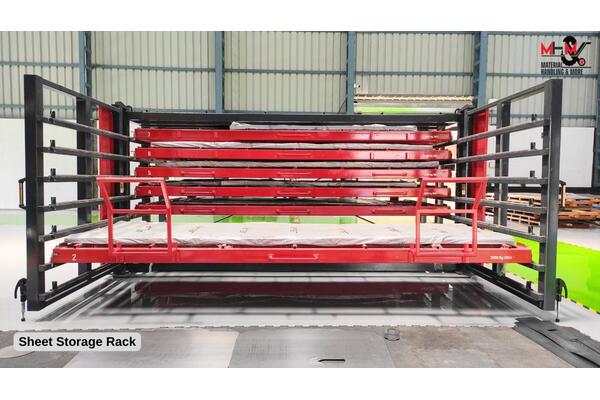 MH&More offers models to store 4x8, 5x10, 5x13, 5x20, 6.5x13, and 6.5x20 ft sheets, covering standard and oversized formats used in metal forming operations. Built for demanding industrial environments, the Sheet Storage Rack helps improve safety, reduce handling time, and maintain a cleaner, more efficient shopfloor.