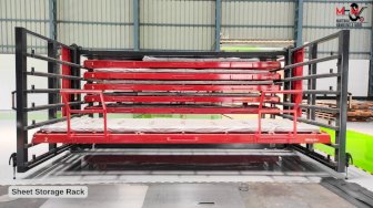 The rack stores sheets horizontally on individual pull-out shelves, allowing easy access using forklifts, cranes, or sheet lifters. This eliminates unsafe manual handling and reduces the risk of sheet damage, bending or surface marks. Each shelf is engineered for high load capacity and smooth operation, making loading and unloading faster and more controlled.