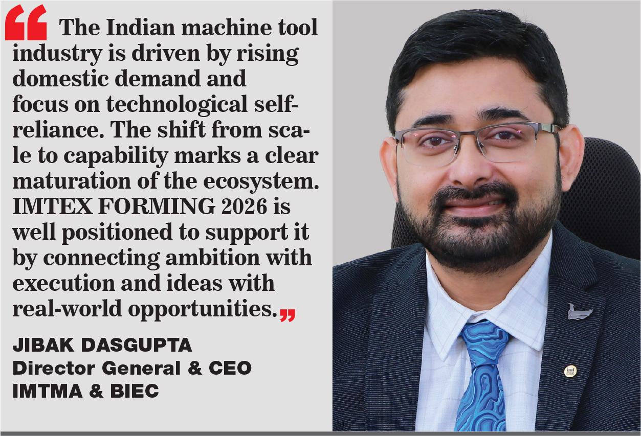 Sharing a broader perspective on the industry’s evolution, Jibak Dasgupta, Director General & CEO, IMTMA and BIEC, observes that the Indian machine tool industry is at a decisive stage, driven by rising domestic demand and a growing focus on technological self-reliance. “The shift from scale to capability marks a clear maturation of the ecosystem. IMTEX FORMING 2026 is well positioned to support this transition by connecting ambition with execution and ideas with real-world opportunities,” he remarks.