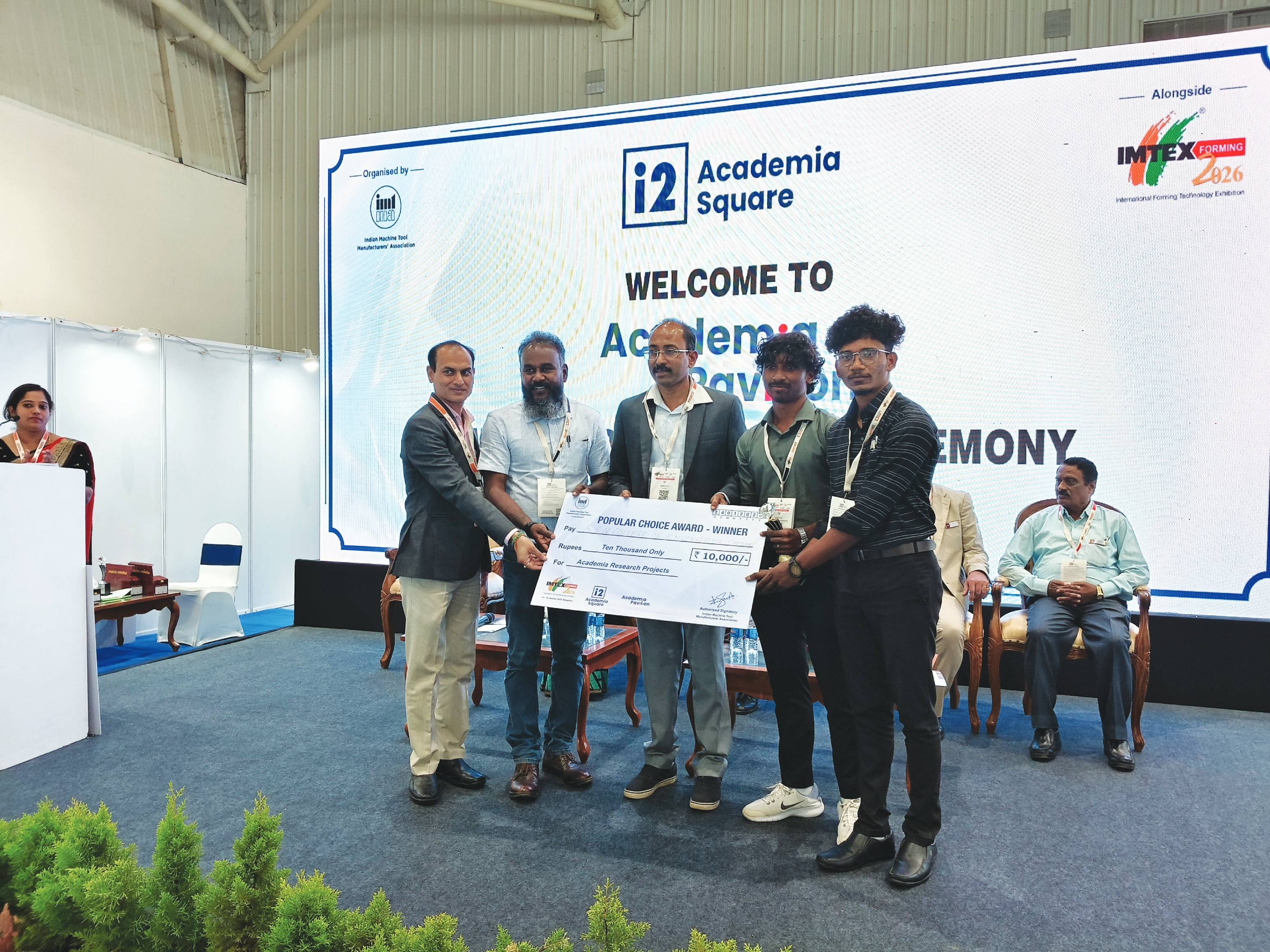 The i2 Academia Awards ceremony was held yesterday, January 24, 2026 recognizing universities for their innovation-led research showcased during IMTEX FORMING 2026.