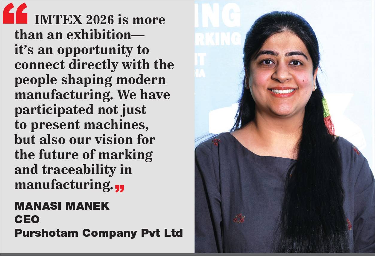 “IMTEX FORMING 2026 is more than an exhibition—it’s an opportunity to connect directly with the people shaping modern manufacturing,” said Manasi Manek, CEO, Purshotam Company Pvt Ltd.