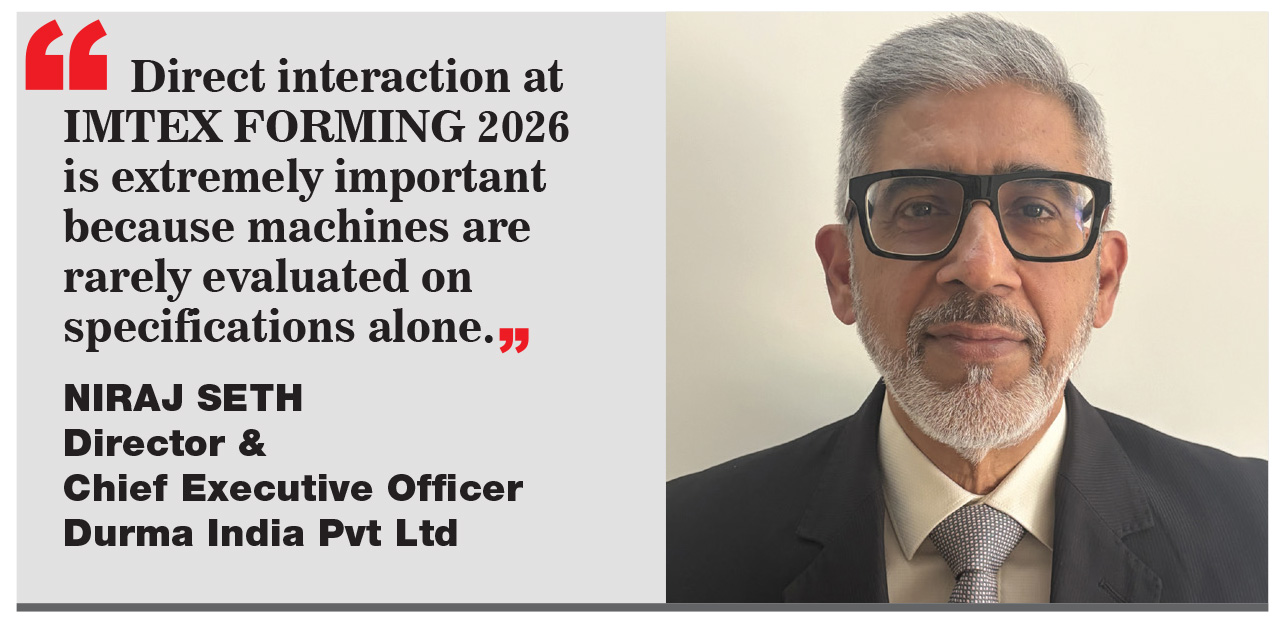According to Niraj Seth, Director & Chief Executive Officer, Durma India Pvt Ltd, IMTEX FORMING allows the company to present Durmazlar’s core engineering principles, including rigid machine construction, precise motion systems, and control platforms designed for industrial duty cycles.