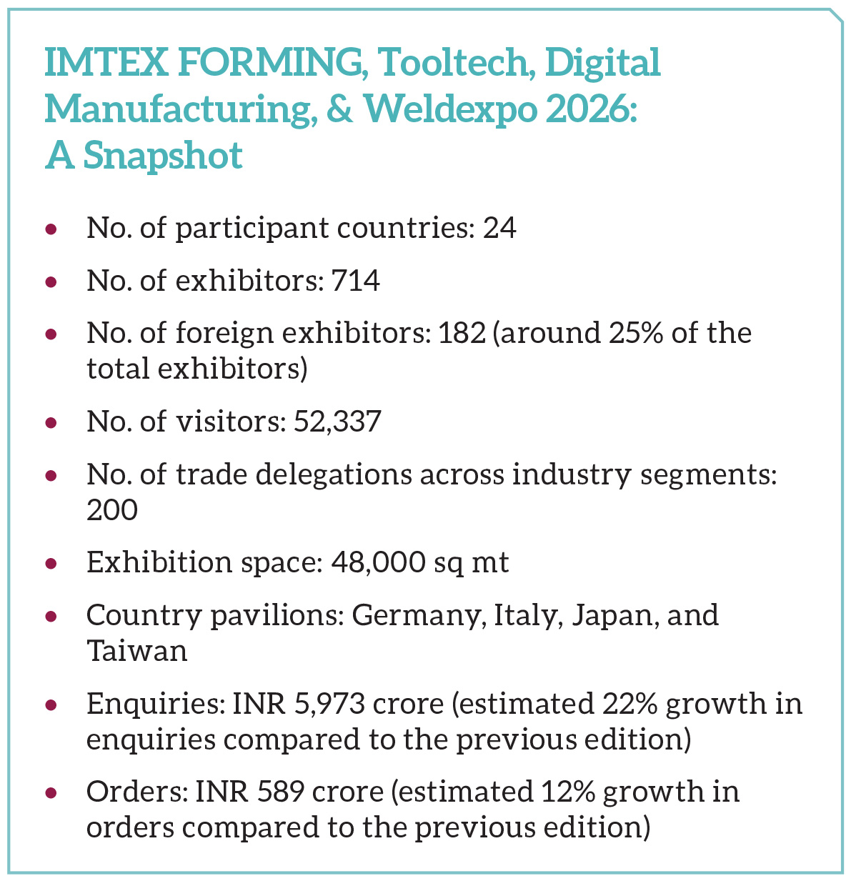 IMTEX FORMING 2026, along with its concurrent shows Tooltech, Digital Manufacturing, and Weldexpo, concluded on a highly optimistic note, reinforcing its position as Asia’s leading exhibition for metal forming and manufacturing technologies. Organized by Indian Machine Tool Manufacturers’ Association, the five-day event was a vibrant showcase of the growing momentum of India’s manufacturing sector.