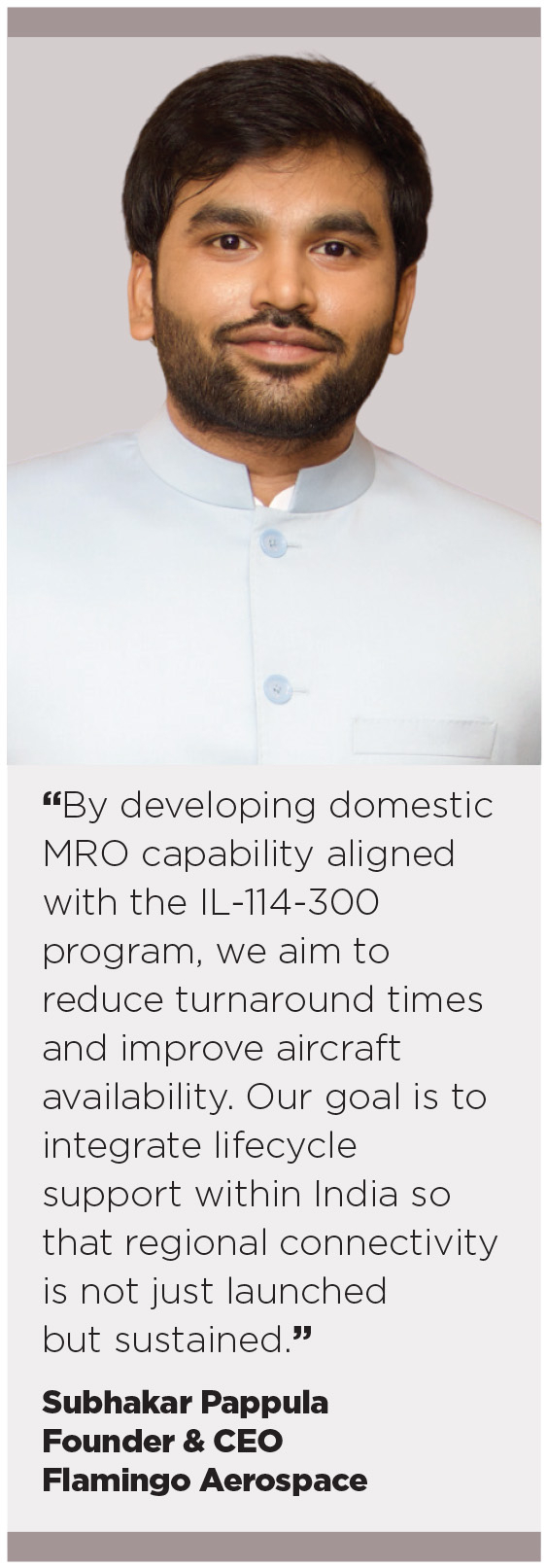 In India, MRO costs have historically been high because many aircraft types rely on overseas maintenance facilities. This increases ferry costs, downtime, and foreign exchange outflows. “By developing domestic MRO capability aligned with the IL-114-300 program, we aim to reduce turnaround times and improve aircraft availability,” says Subhakar.
