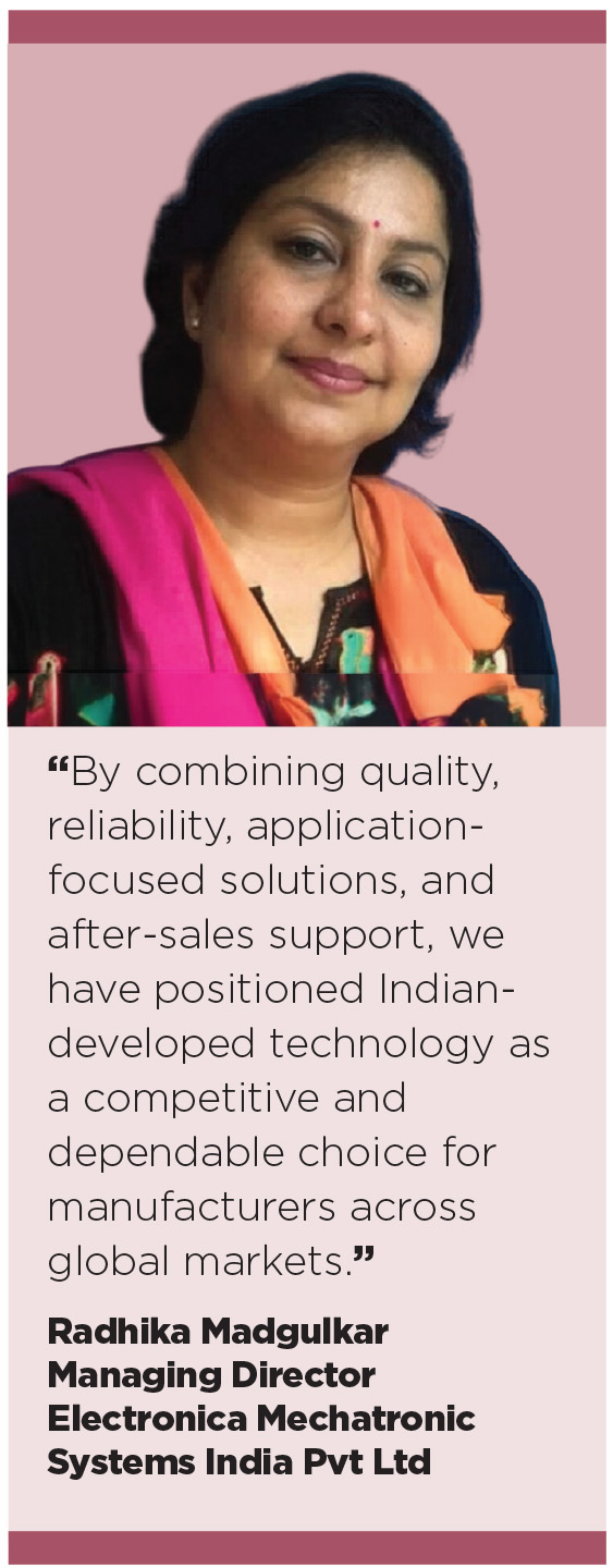 Electronica Mechatronic Systems India is currently developing next-generation metrology systems and AI-enabled customized inspection solutions. “We are integrating digital technologies and data-driven measurement capabilities aligned with Industry 4.0 environments,” she highlighted.