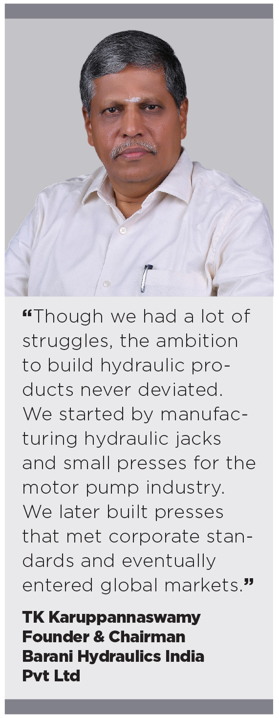 “Barani Hydraulics always focused on introducing new technology. With every decade of our journey, we have adopted modern techniques at par with global manufacturers,” Karuppannaswamy explained with pride, hinting at the company’s expansion of its technology base and manufacturing capabilities.